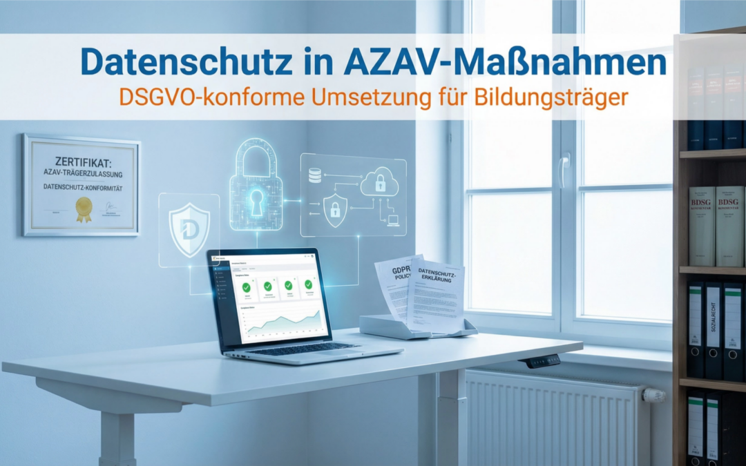 Datenschutz ist für AZAV-Bildungsträger nicht nur eine rechtliche Verpflichtung, sondern ein entscheidender Vertrauensfaktor gegenüber Teilnehmern, Arbeitsagenturen und Zertifizierungsstellen. Die Datenschutz-Grundverordnung (DSGVO) hat die Anforderungen an den Umgang mit personenbezogenen Daten erheblich verschärft – und Bildungsträger verarbeiten naturgemäß besonders sensible Daten ihrer Teilnehmer, von der Gesundheitshistorie bis zu Vermittlungshemmnissen.